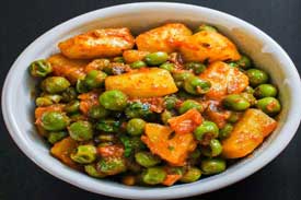 It is medium spicy with a slightly tangy flavor from tomatoes and amchur.